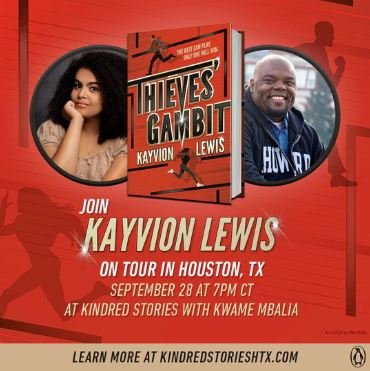 For more information or to order the book, please visit: https://kindredstorieshtx.com/products/irl-author-talk-thieves-gambit-with-kayvion-lewis-kwame-mbalia-september-28-at-7pm