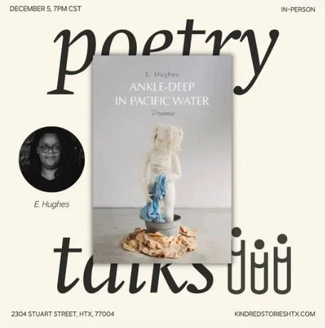 For more information or to order books, please visit: https://kindredstorieshtx.com/products/irl-poetry-reading-ankle-deep-in-pacific-water-with-e-hughes-december-6-7pm