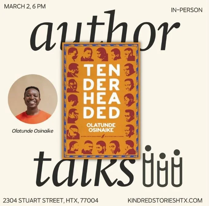 For more information or to order books, please visit: https://kindredstorieshtx.com/products/irl-poetry-reading-tender-headed-with-olatunde-osinaike-march-2-6pm