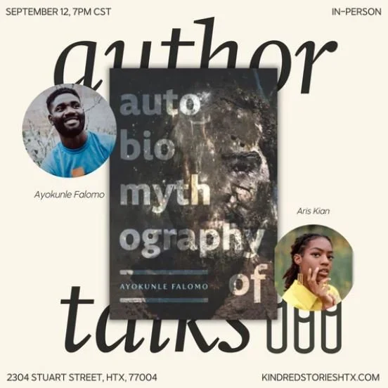 For more information or to order books, please visit: https://kindredstorieshtx.com/products/irl-author-talk-autobiomythography-of-with-ayokunle-falomo-september-12