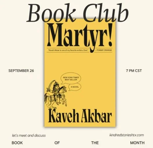For more information or to order books, please visit: https://kindredstorieshtx.com/collections/book-clubs/products/september-2024-adult-fiction-book-club-september-26-7pm