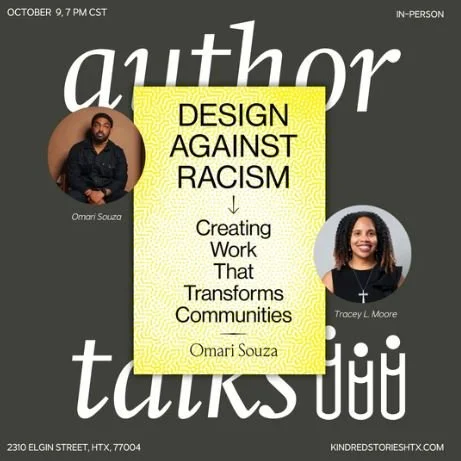 For more information or to order books, please visit: https://kindredstorieshtx.com/products/irl-author-talk-design-against-racism-with-omari-souza-october-9-7-pm?_pos=9&_sid=8411aead8&_ss=r