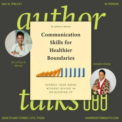 For more information or to order books, please visit: https://kindredstorieshtx.com/products/irl-author-talk-communication-skills-for-healthier-boundaries-with-dr-latoya-s-gilmore-may-8-7pm