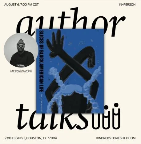 For more information or to order books, please visit: https://kindredstorieshtx.com/collections/past-events/products/irl-author-talk-slices-of-black-american-life-with-mr-tomonoshi-august-6-7-pm