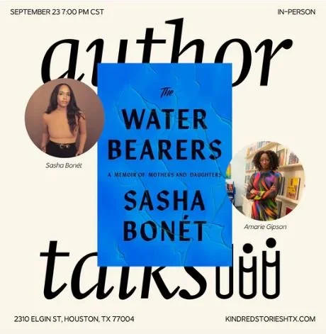 For more information or to order books, please visit: https://kindredstorieshtx.com/products/irl-author-talk-the-waterbearers-with-sasha-bonet-september-23-7pm